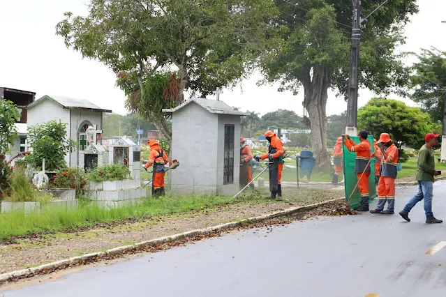 A Prefeitura de Manaus, por meio da Secretaria Municipal de Limpeza Urbana (Semulsp), intensifica, nesta quinta-feira, 6/4, serviços de limpeza nos cemitérios Nossa Senhora Aparecida (Tarumã), Santo Alberto (Colônia Antônio Aleixo) e São João Batista (Nossa Senhora das Graças).