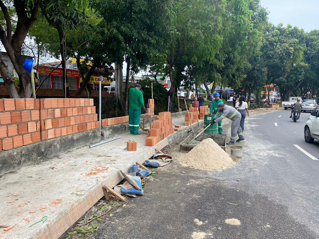 Os serviços de revitalização do passeio público nas avenidas Beira-Mar e Beira-Rio, no bairro Coroado, zona Leste, executados pela Prefeitura de Manaus, avançam, nesta segunda-feira, 30/9. No entorno do igarapé, já foram implantados mais de 1.200 metros de calçada pelos trabalhadores da Secretaria Municipal de Infraestrutura (Seminf).
